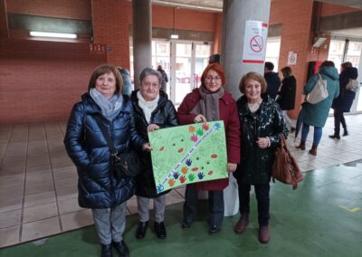 El jueves 6 de marzo de 2025 tuvo lugar el acto comunitario con motivo del Día Internacional de la Mujer (8M) en la que los centros educativos, asociaciones y entidades de La Almunia presentaron los trabajos realizados. La actividad se realizó en el Polideportivo. Cada participante presentó las siluetas de 5 manos y la cartulina con el lema “POR MÍ Y POR TODAS MIS COMPAÑERAS”.